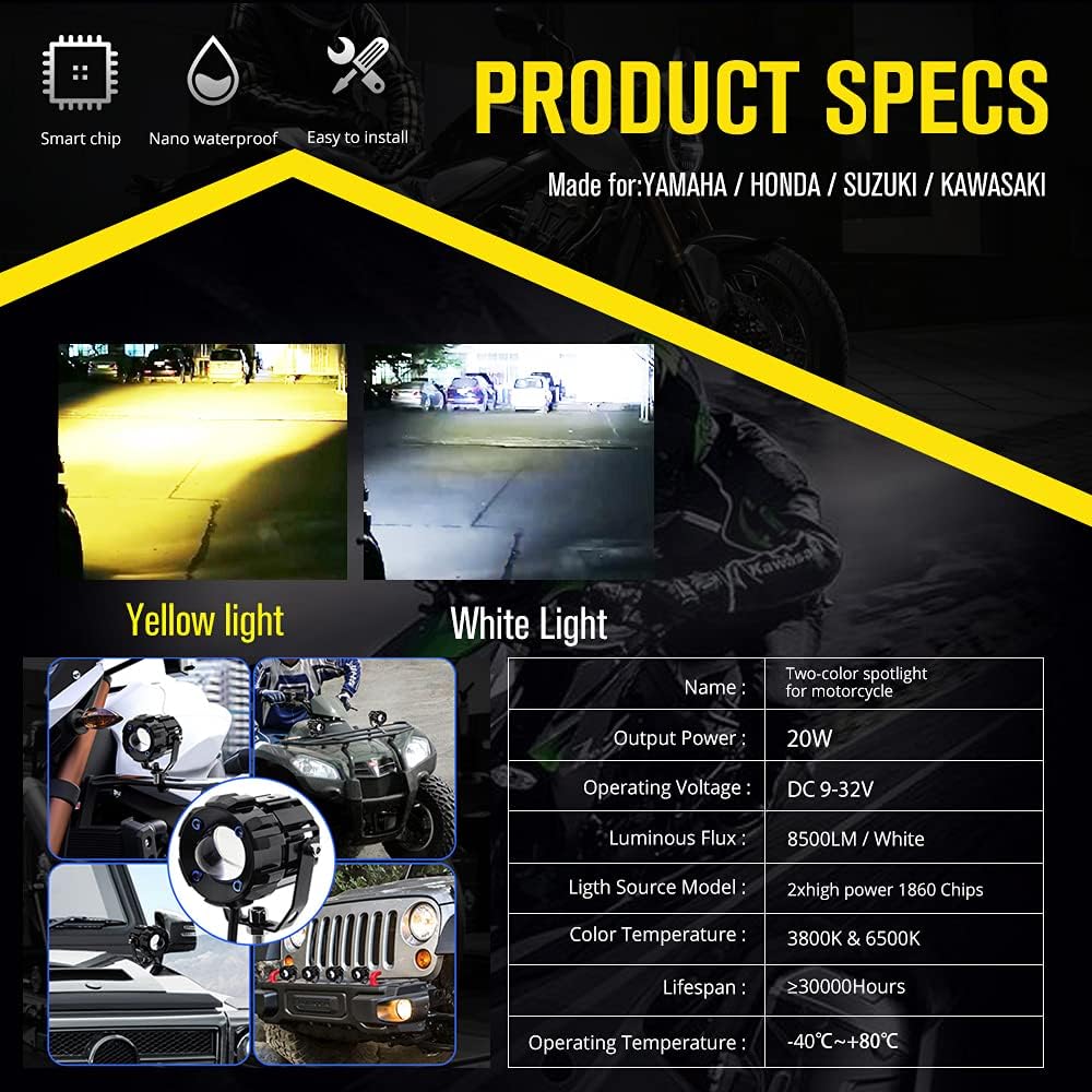 💫This light can let you see ahead more clearly and drive safely in the Foggy , rainy , snowy weather.Also it can use as camping light at night. Ensure a wide lighting area, make driving at night easier and more comfortable.